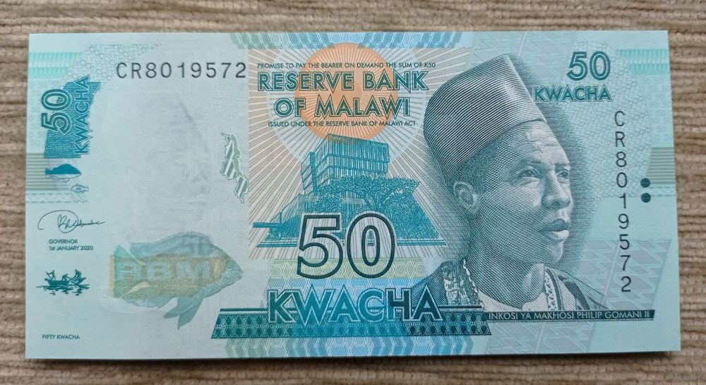 Werty71 Малави 50 квача 2020 UNC банкнота Рыба