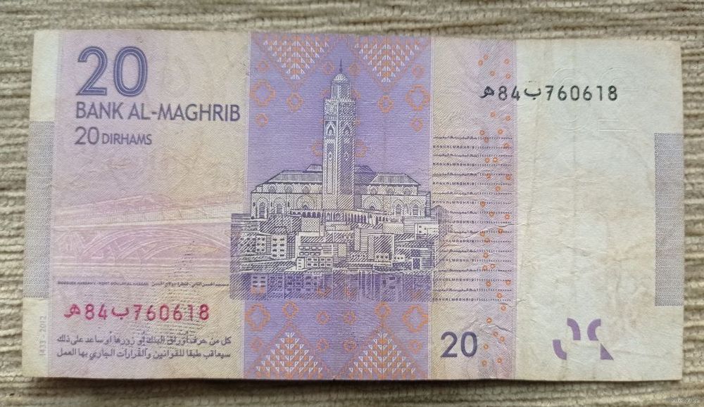 Werty71 МАРОККО 20 ДИРХАМОВ 2012 банкнота Мечеть Хассана 2 Касабланка мост поезд религия дирхам