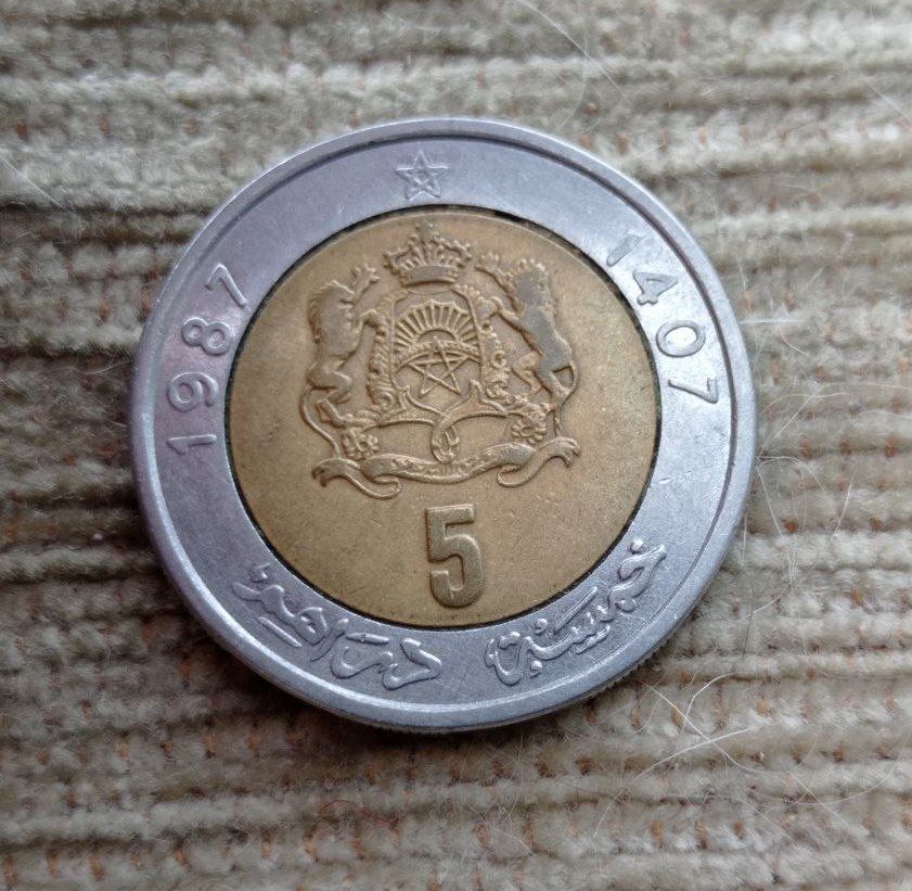 Werty71 Марокко 5 дирхам 1987 дирхамов биметалл
