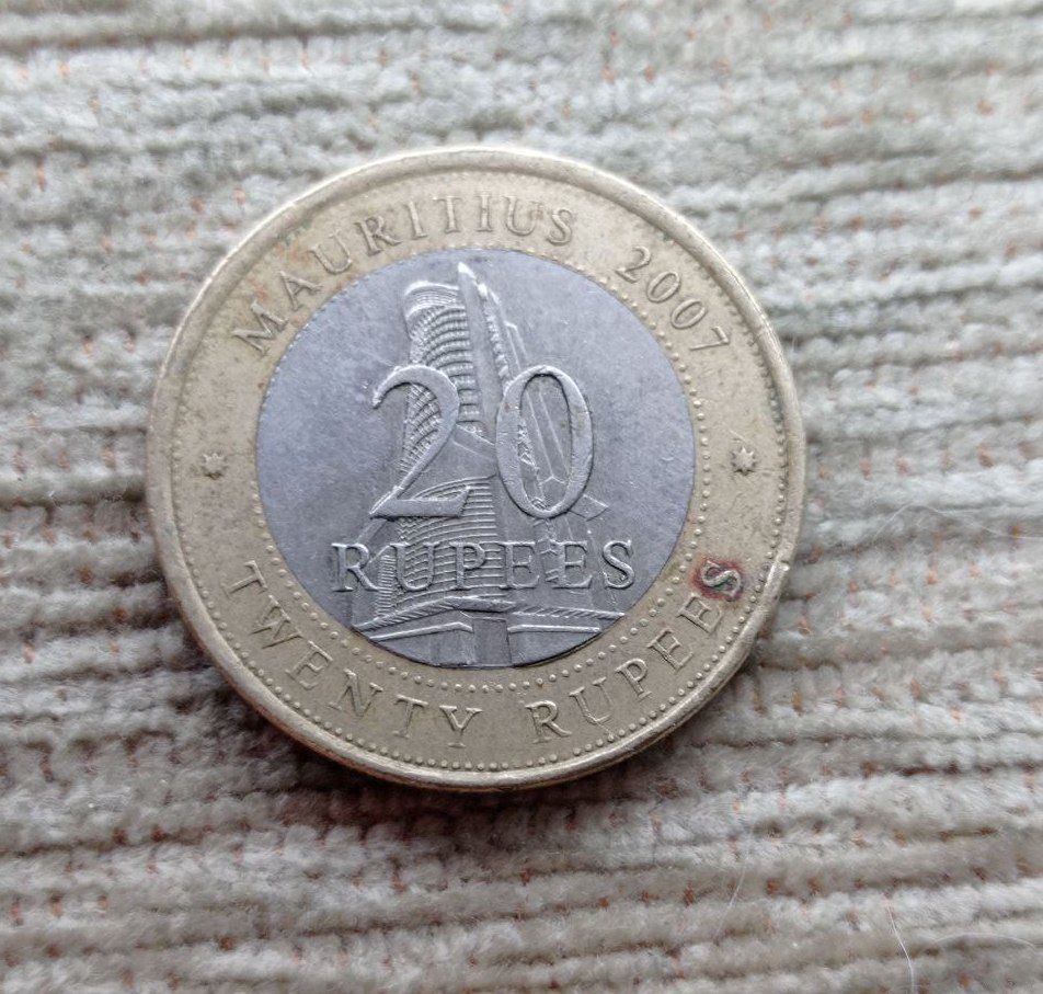 Werty71 Маврикий 20 рупий 2007 40 лет Банку Маврикия