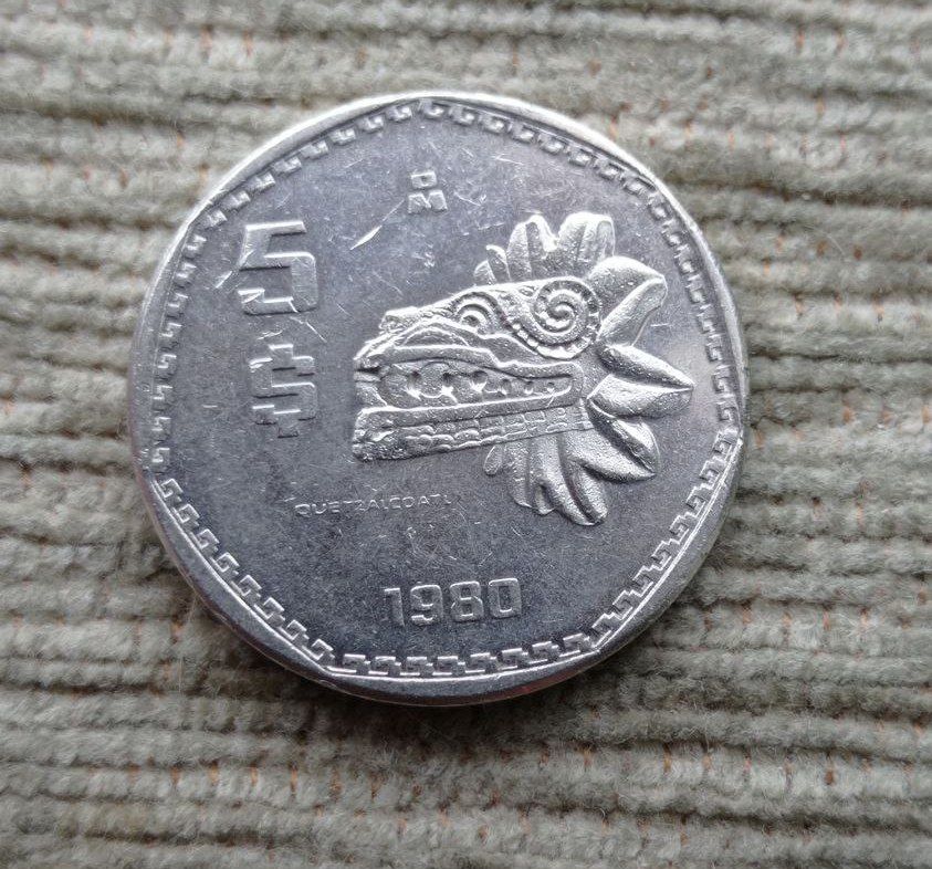 Werty71 Мексика 5 песо 1980 Кетцалькоатль ПЕРНАТЫЙ ЗМЕЙ