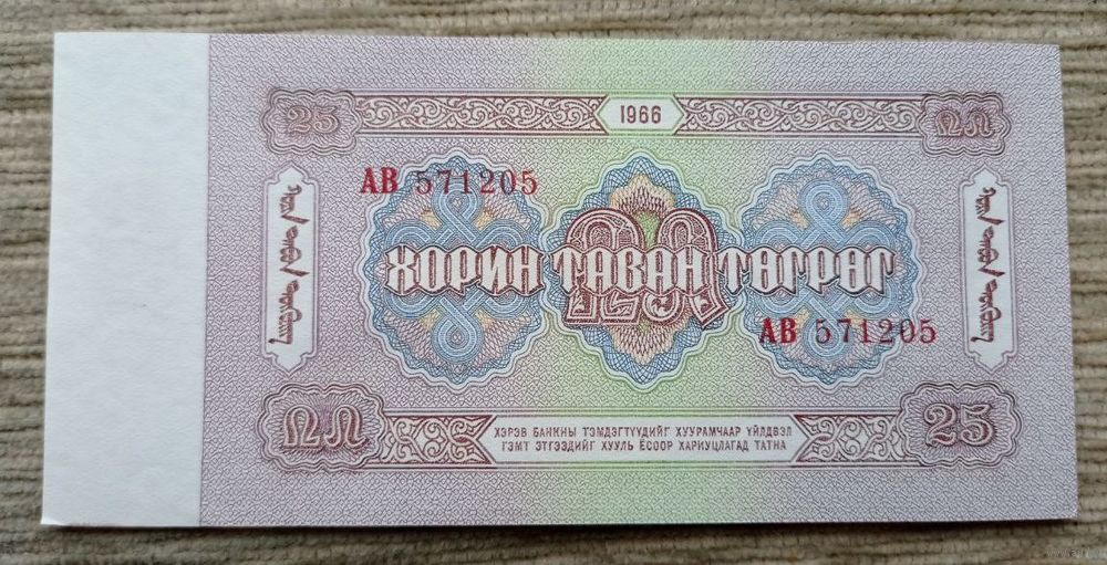 Werty71 Монголия 25 тугриков 1966 аUNC банкнота