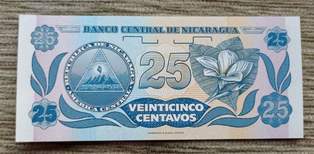 Werty71 Никарагуа 25 сентаво 1991 UNC банкнота