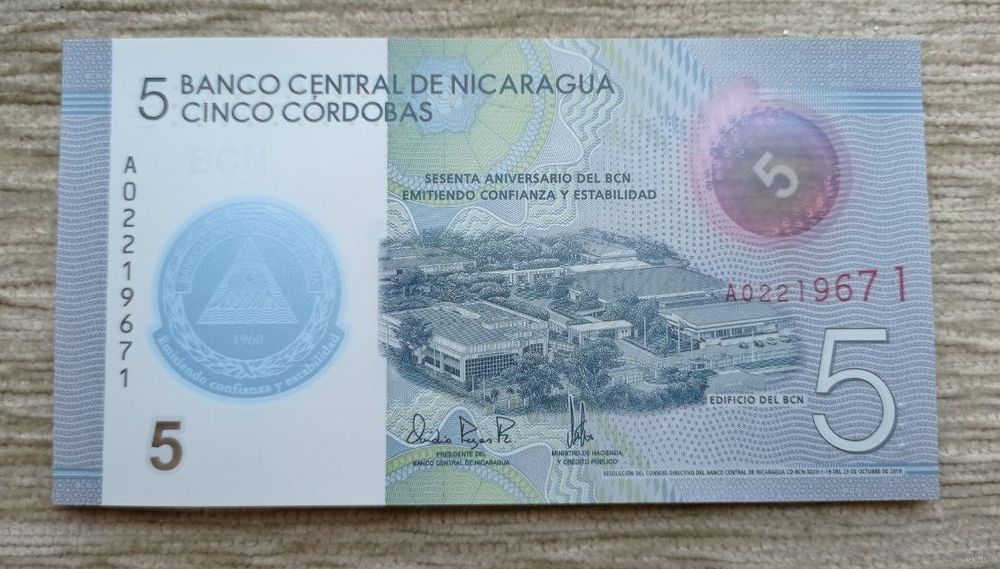 Werty71 Никарагуа 5 кордоба 2019 UNC банкнота