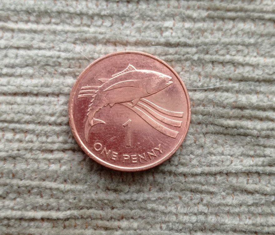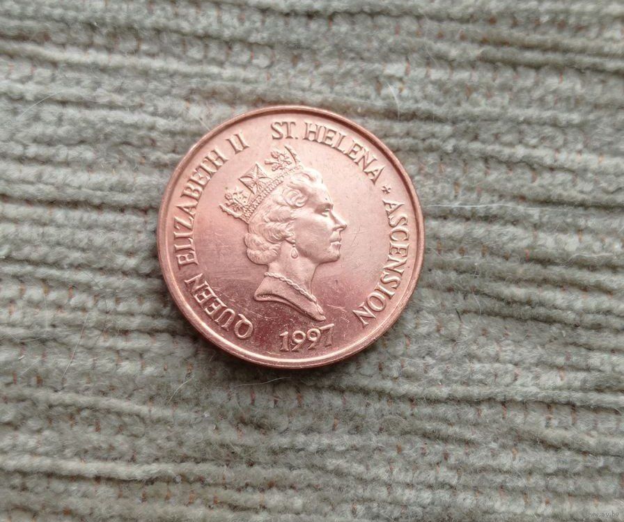 Werty71 Остров Святой Елены и Вознесения 1 пенни 1997 Средний портрет Королевы Рыба Тунец