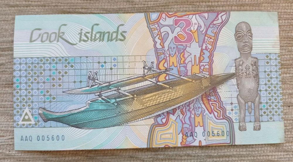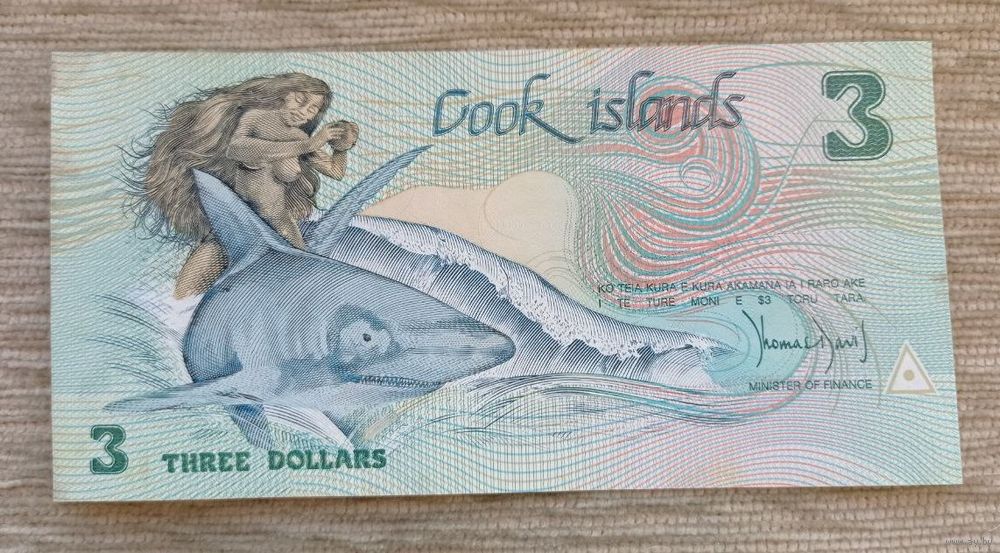 Werty71 Острова Кука 3 доллара 1987 Банкнота Ина и акула полинезийская легенда