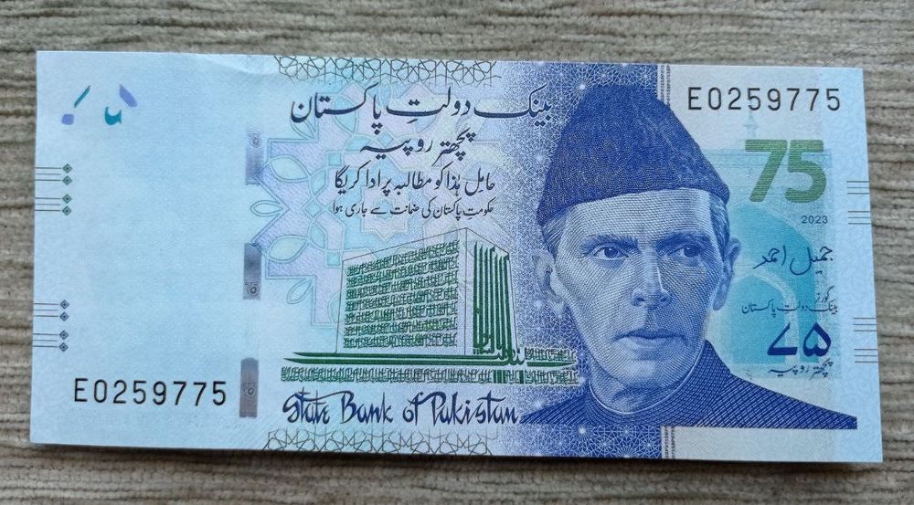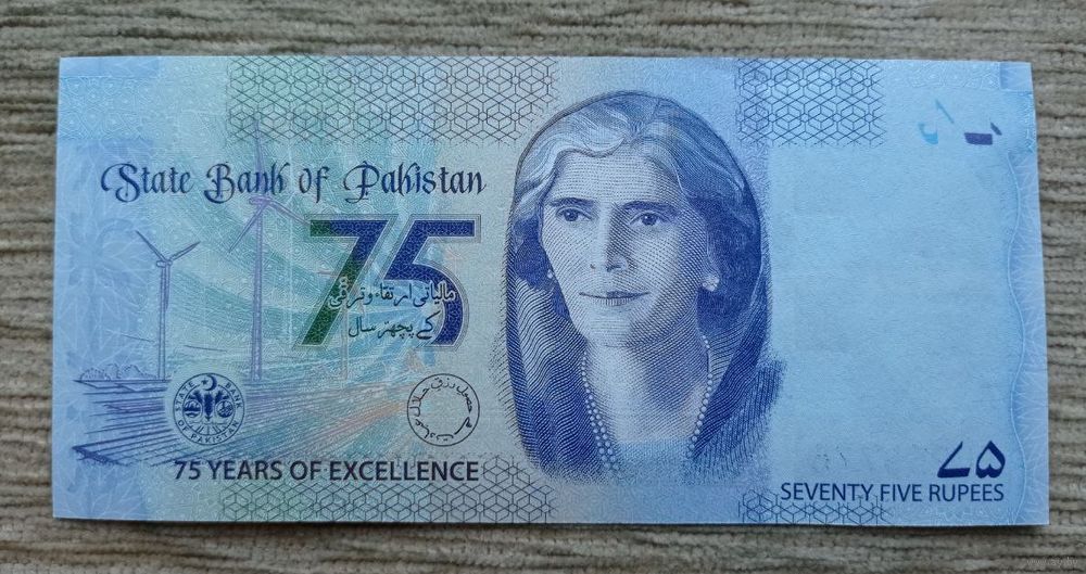 Werty71 Пакистан 75 рупий 2023 75 лет Государственному банку UNC банкнота