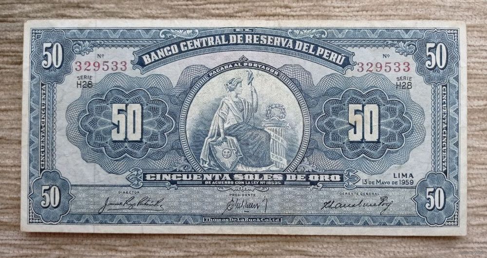 Werty71 Перу 50 соль де оро солей золотом 1959 банкнота Редкая