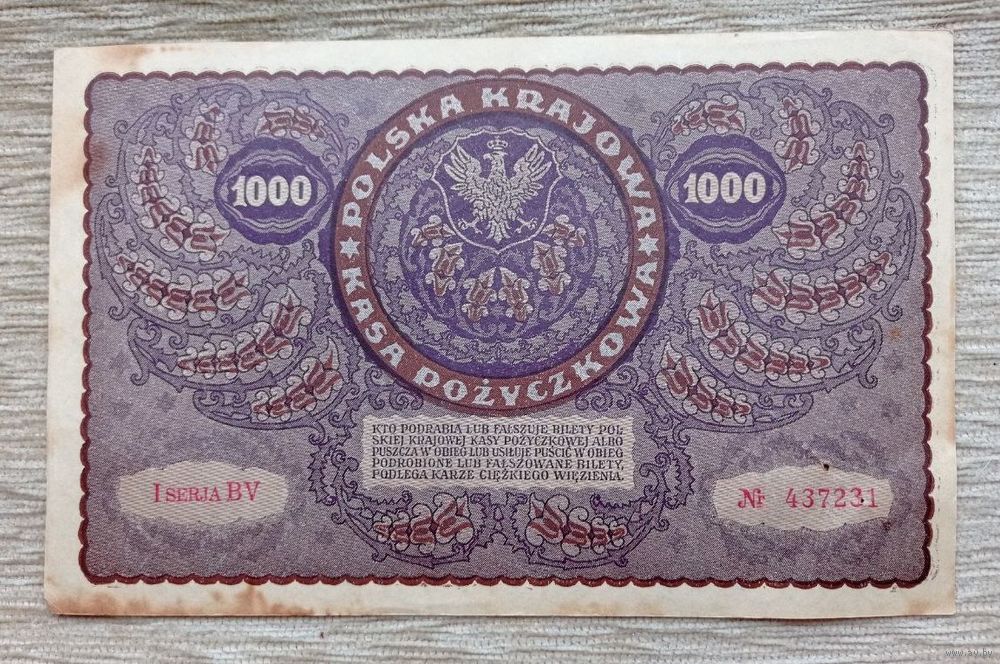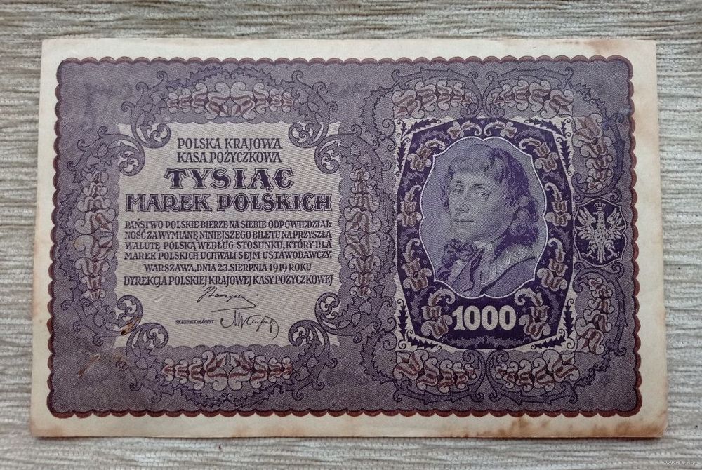 Werty71 Польша 1000 огромных марок польских 1919 Костюшко не злотых банкнота
