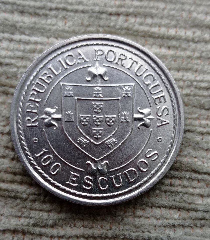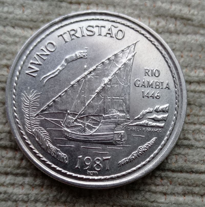Werty71 Португалия 100 эскудо 1987 Золотой век открытий - Нуну Триштан Корабль Гамбия