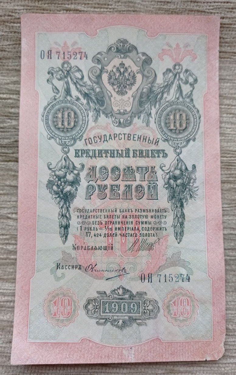 Werty71 Россия 10 рублей 1909 Шипов Овчинников банкнота серия ОЯ