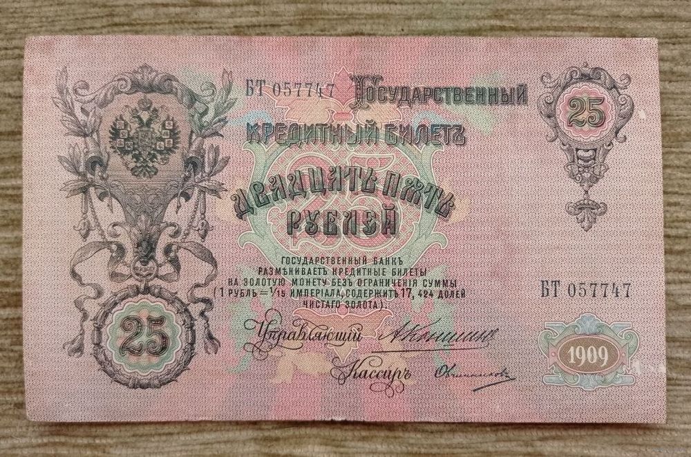 Werty71 Россия 25 рублей 1909 Коншин Овчинников серия БТ-057747 банкнота