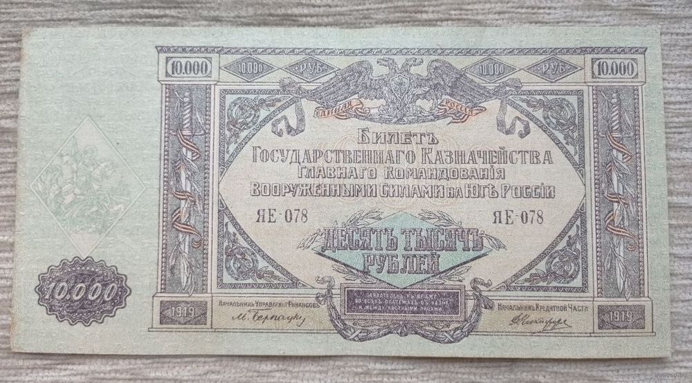 Werty71 Россия ВСЮР - 10000 Рублей 1919 банкнота