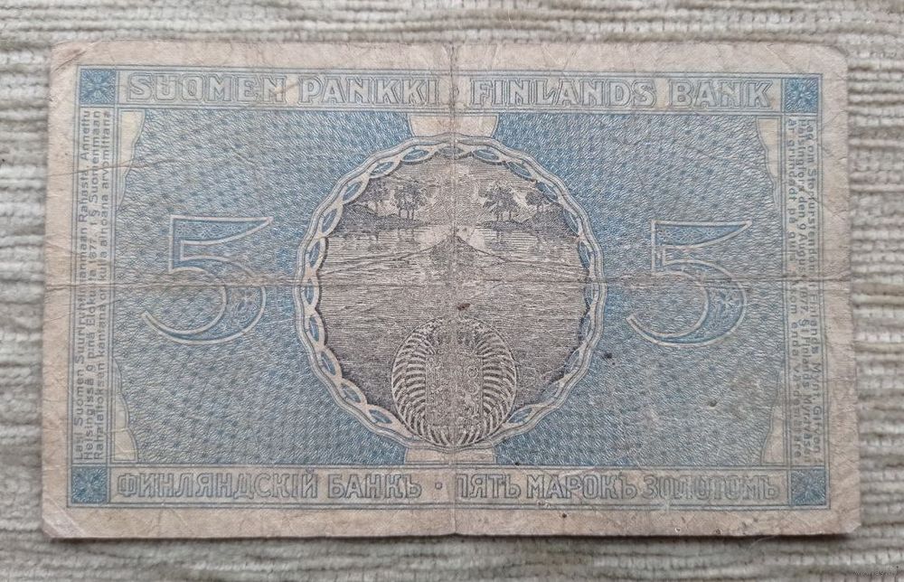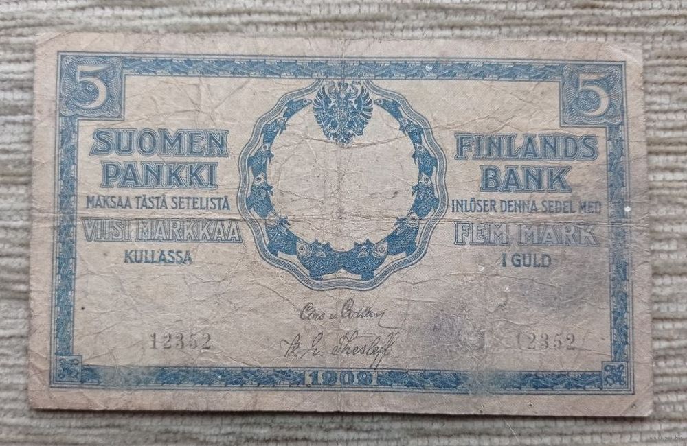 Werty71 Русская Финляндия 5 марок золотом 1909 банкнота
