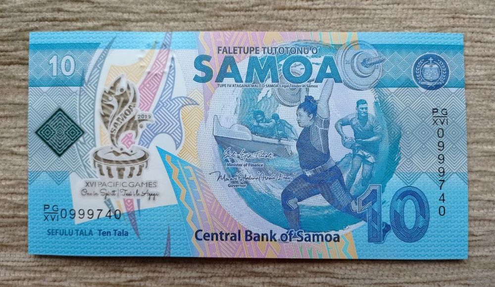 Werty71 Самоа 10 тала 2019 UNC банкнота XVI Тихоокеанские игры полимер