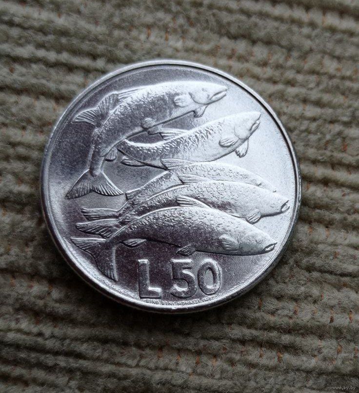Werty71 Сан-Марино 50 лир 1975 год Любовь у животных косяк рыб