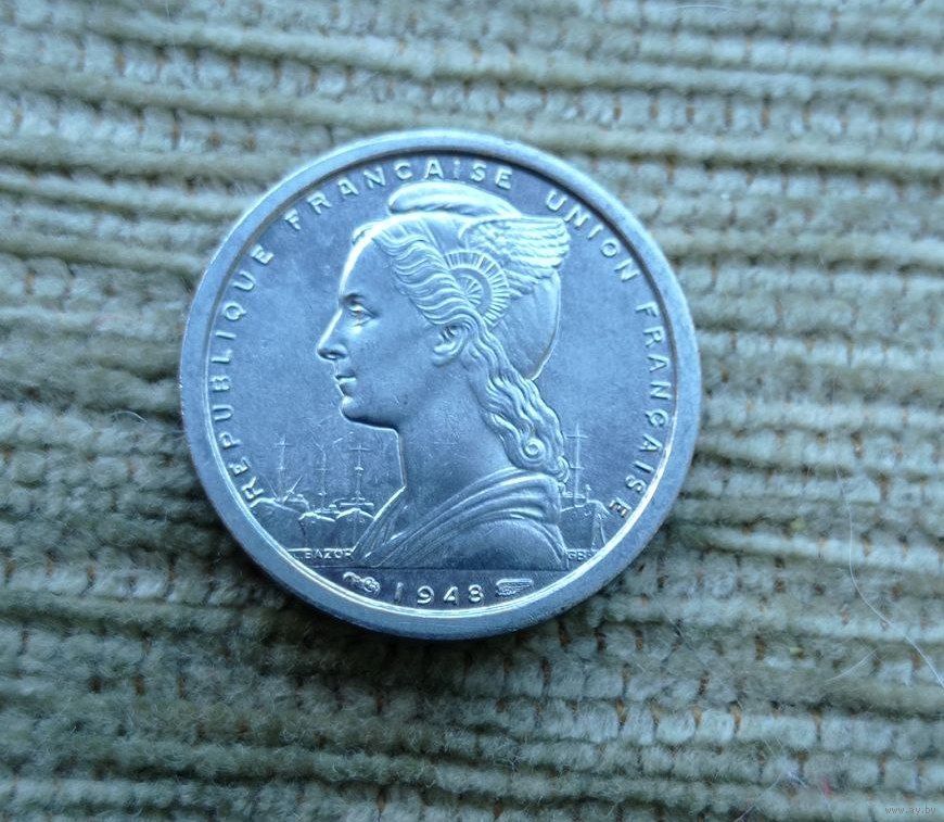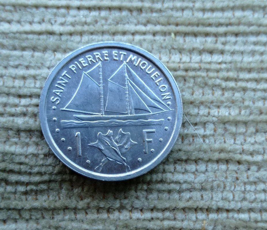 Werty71 Сен Пьер и Микелон 1 франк 1948 ПАРУСНИК ФЛОТ РЫБНАЯ ЛОВЛЯ РЫБА ТРЕСКА