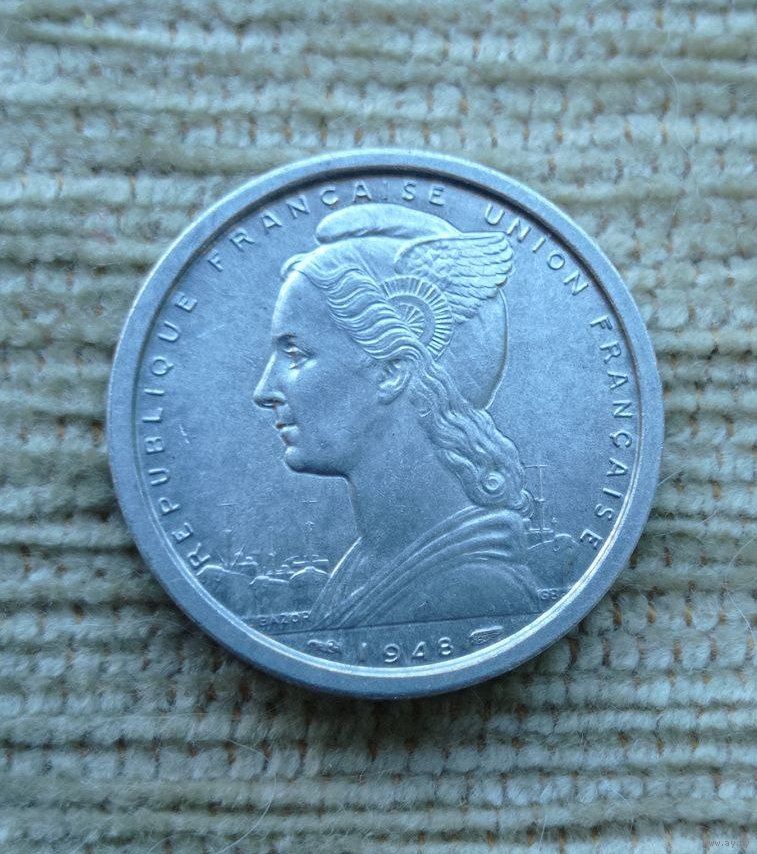 Werty71 Сен-Пьер и Микелон Французский 2 франка 1948 Корабль Либертина Блеск
