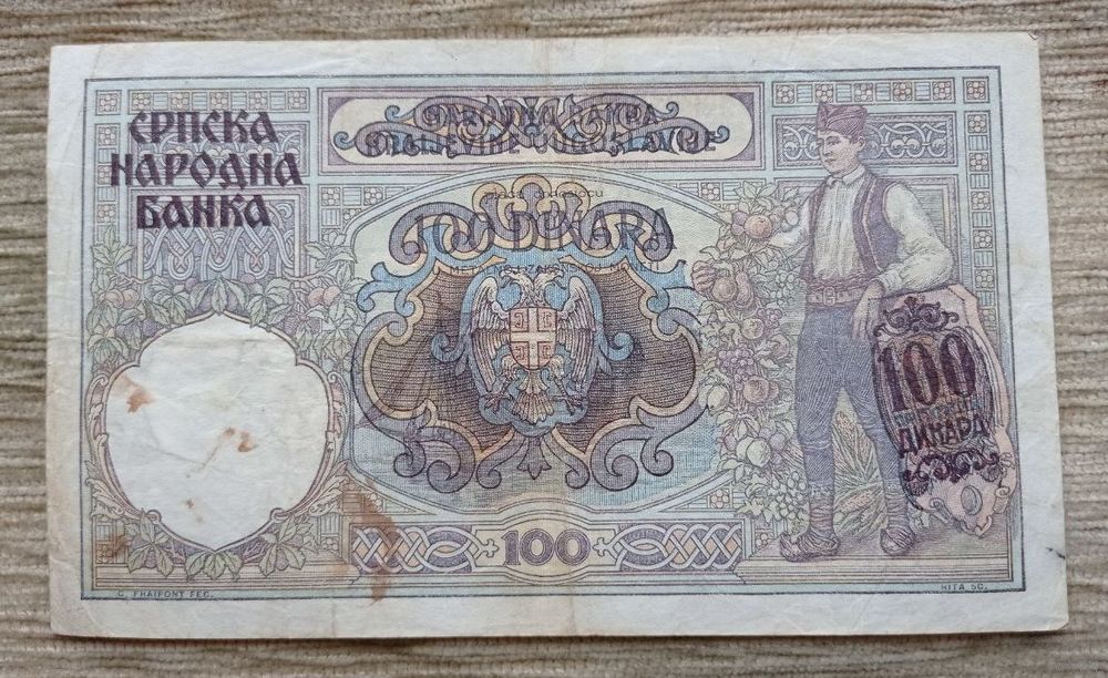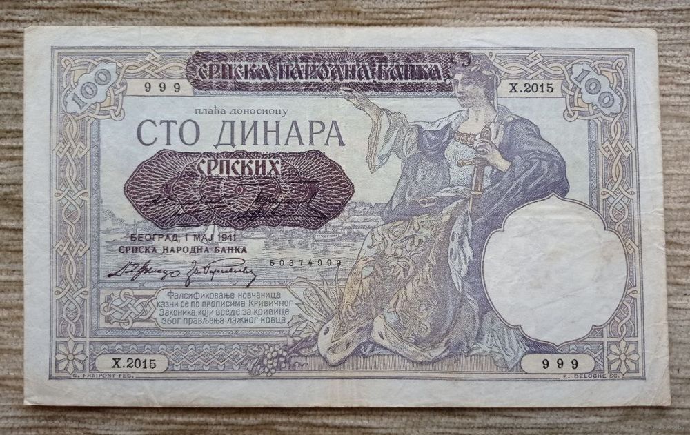 Werty71 Сербия 100 динаров 1941 банкнота Югославия большой формат