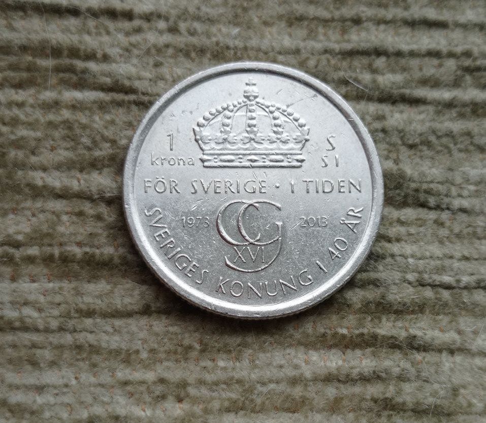 Werty71 Швеция 1 крона 2013 40 лет правления Короля Карла XVI Густава