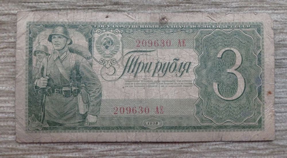 Werty71 СССР 3 рубля 1938 банкнота серия АЕ