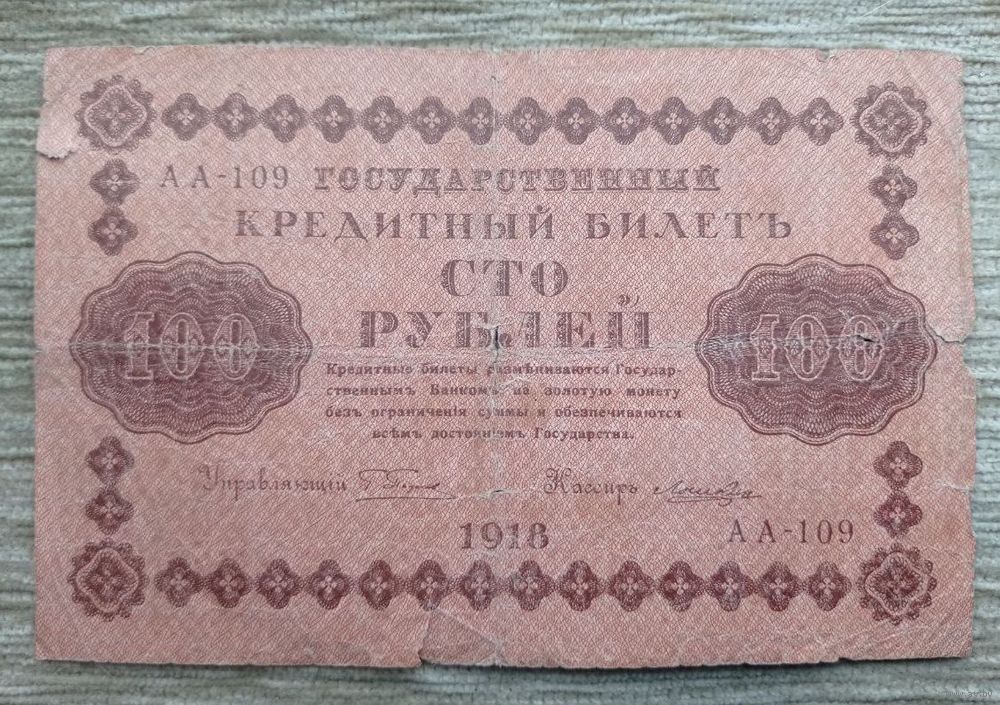 Werty71 СССР РСФСР 100 рублей 1918 Пятаков Лошкин банкнота серия АА 109