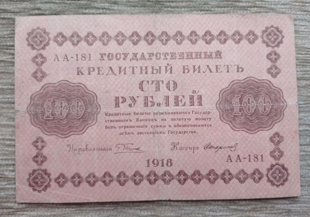 Werty71 СССР РСФСР 100 рублей 1918 Пятаков Стариков банкнота серия АА 181
