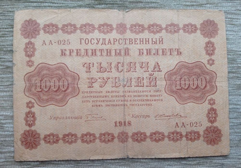Werty71 СССР РСФСР 1000 рублей 1918 Пятаков Жихарев банкнота серия АА 025