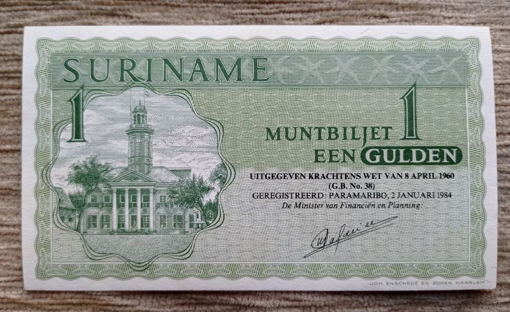 Werty71 Суринам 1 гульден 1984 UNC банкнота