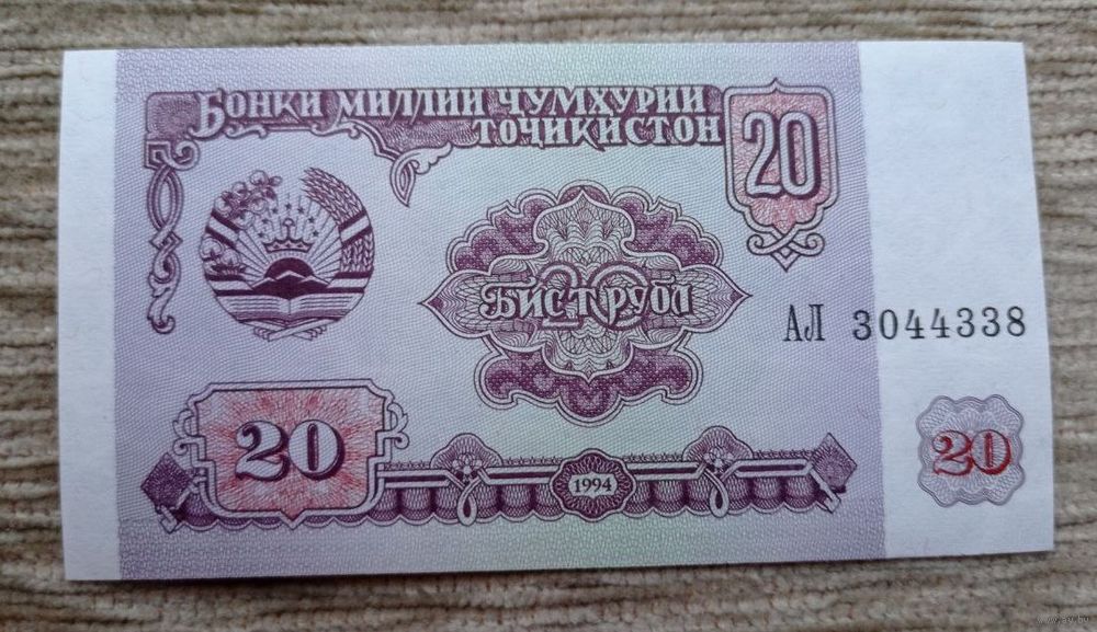 Werty71 Таджикистан 20 Рублей 1994 UNC банкнота