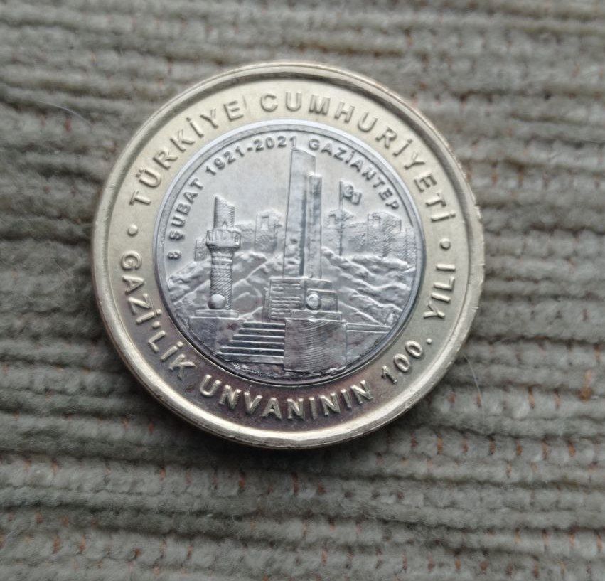 Werty71 Турция 1 лира 2021 100 лет Газиантепу