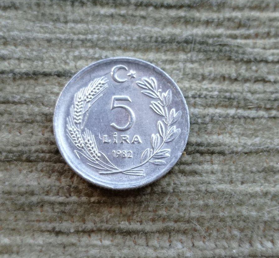 Werty71 Турция 5 лир 1982 Всадник Мустафа Кемаль Ататюрк на лошади Колосья пшеницы