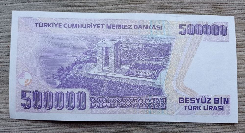 Werty71 Турция 500000 лир 1970 памятник мученикам у западного входа в Дарданеллы аUNC банкнота