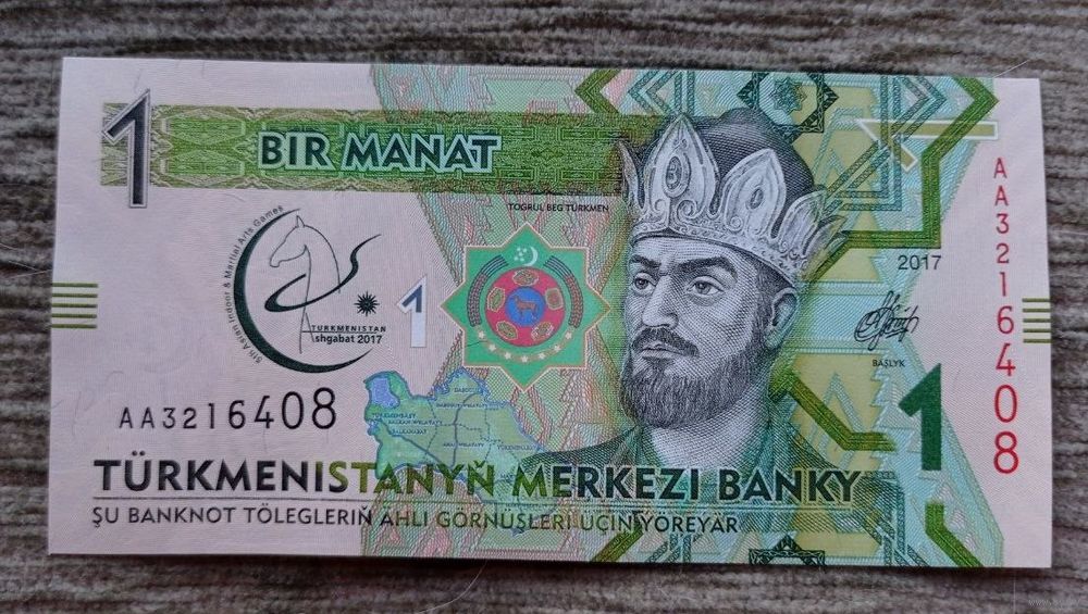 Werty71 Туркменистан 1 манат 2017 UNC банкнота Азиатские игры Тогрул бек Туркмения