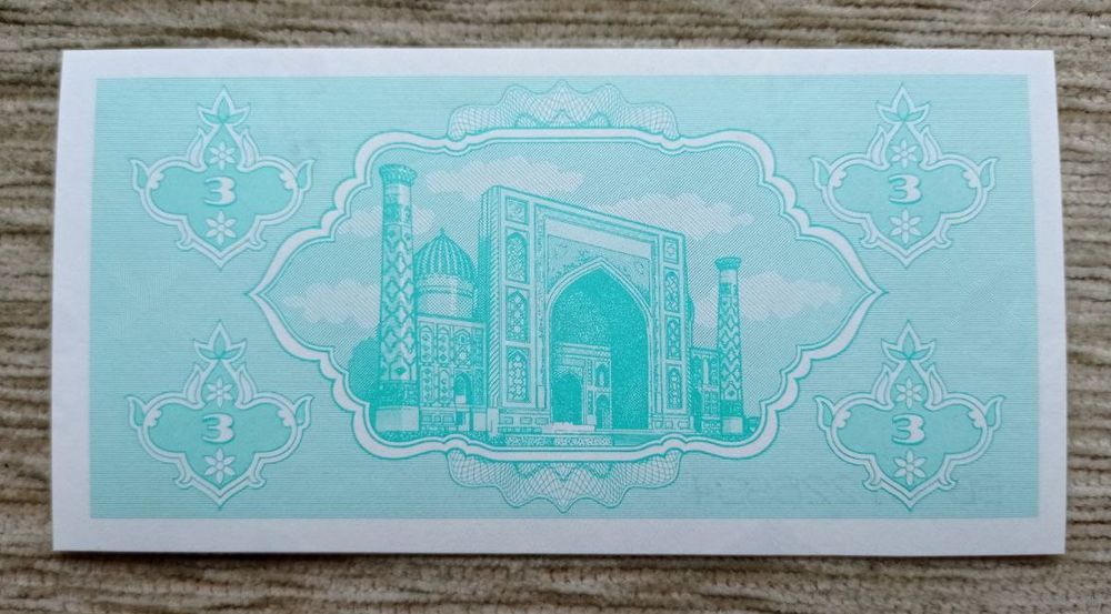 Werty71 Узбекистан 3 сум 1992 UNC банкнота