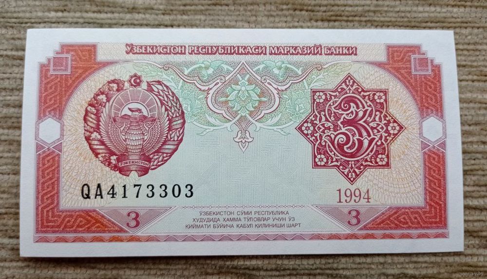 Werty71 Узбекистан 3 сум 1994 UNC банкнота