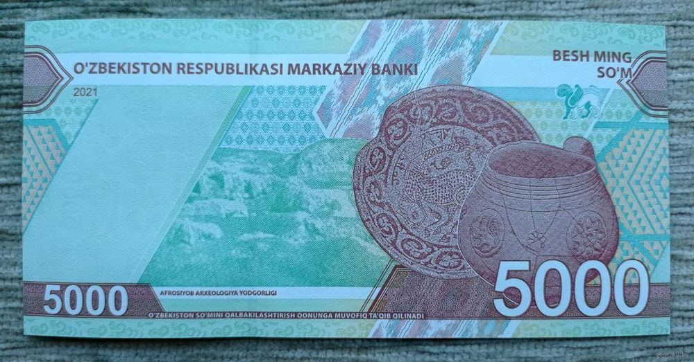 Werty71 Узбекистан 5000 Сум 2021 UNC Банкнота