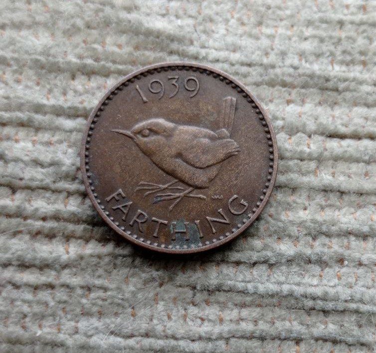 Werty71 Великобритания 1 фартинг 1939 Георг 6 Крапивник Птица