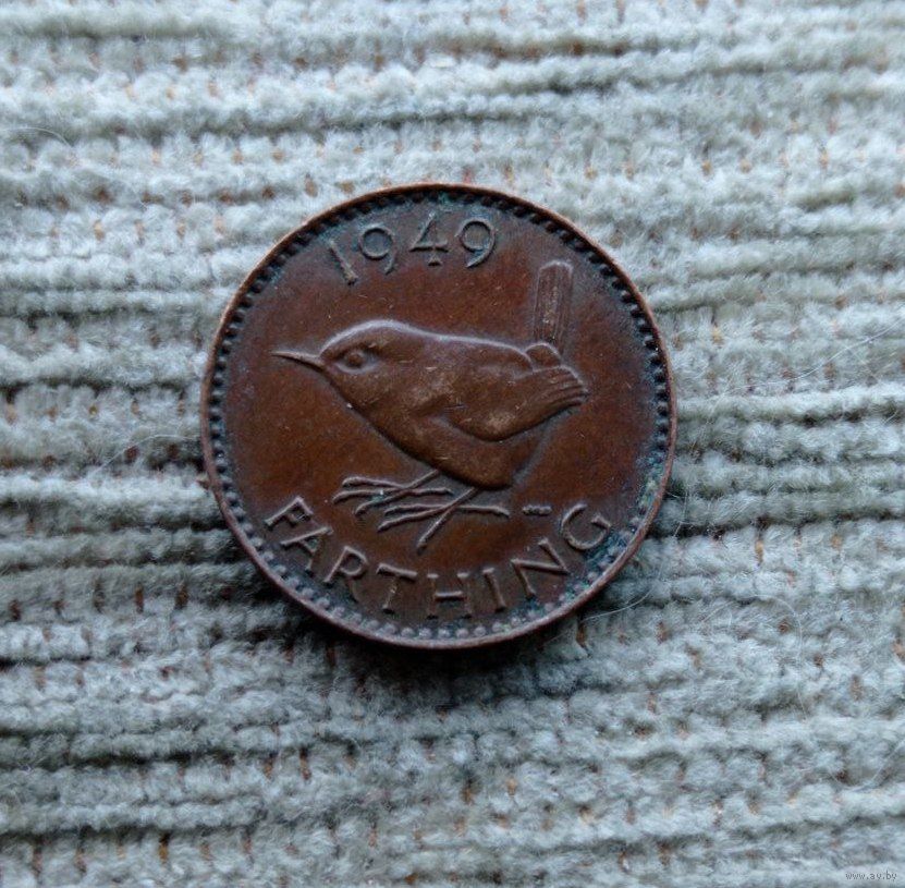 Werty71 Великобритания 1 фартинг 1949 Георг 6 Крапивник Птица