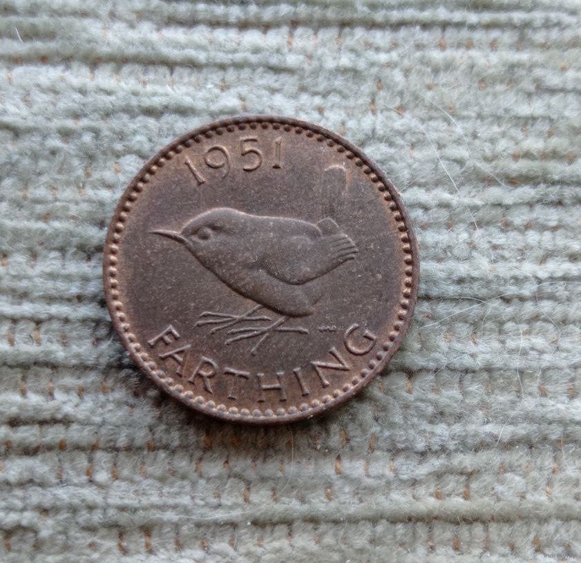 Werty71 Великобритания 1 фартинг 1951 Георг 6 Крапивник Птица