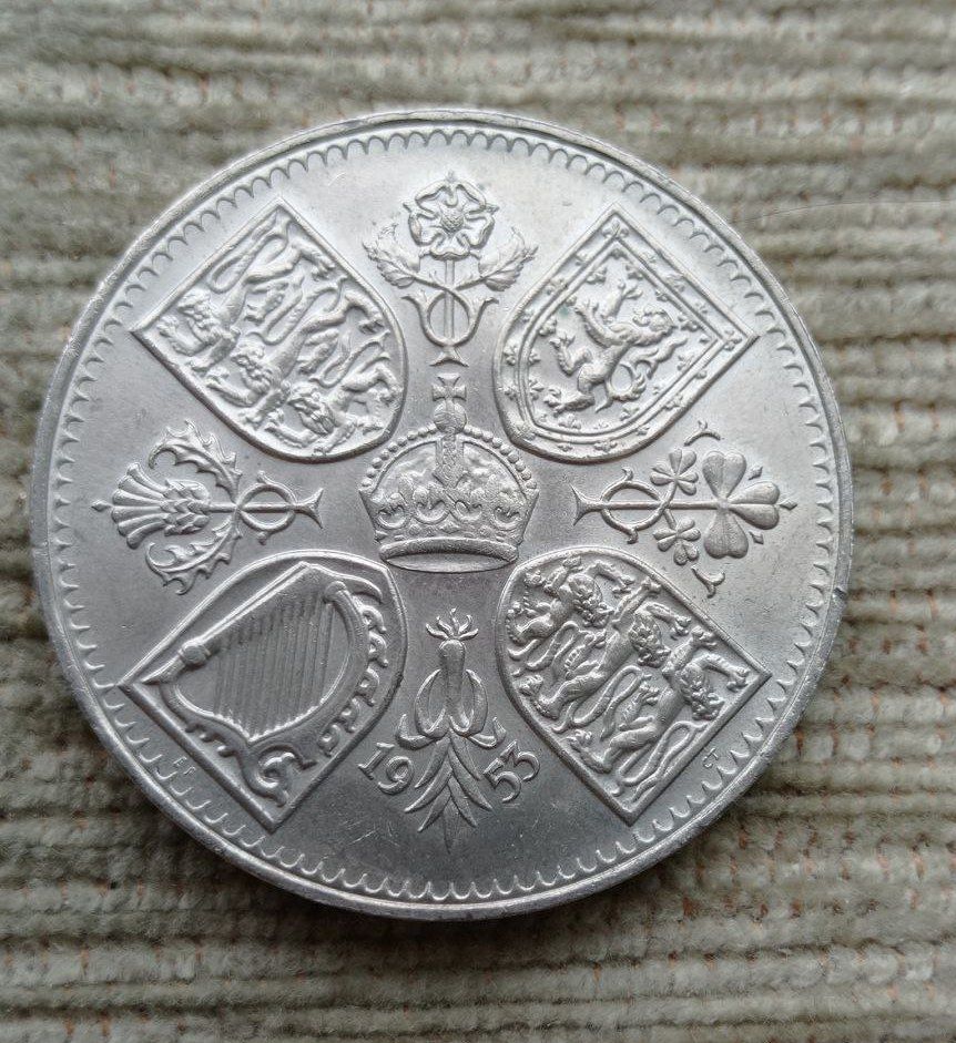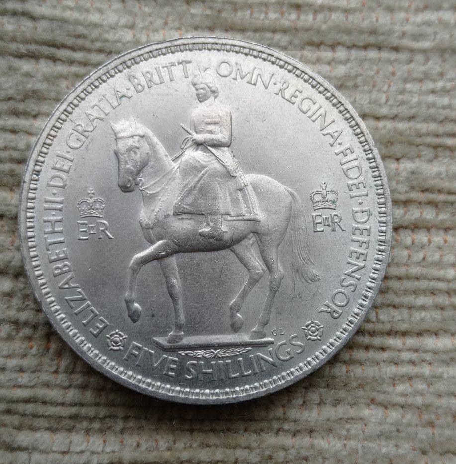 Werty71 Великобритания 5 шиллингов 1953 1 крона Елизавета 2 Британия Королева на Лошади