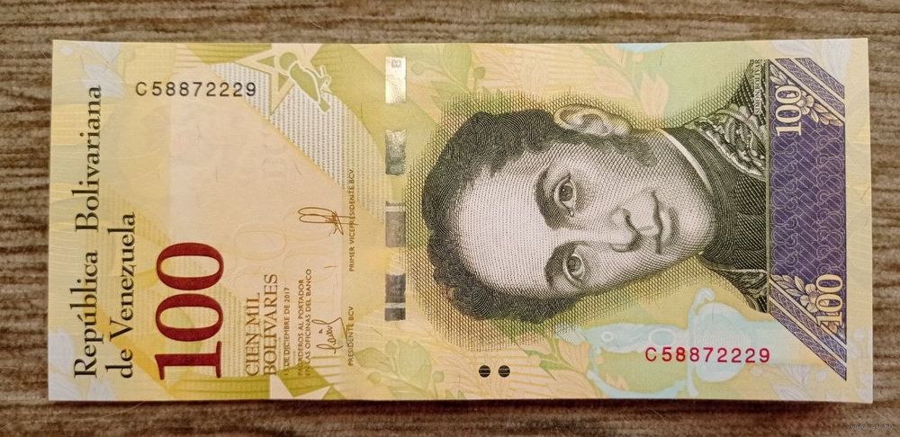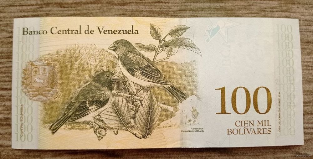 Werty71 Венесуэла 100000 боливаров 2017 UNC банкнота воробьи