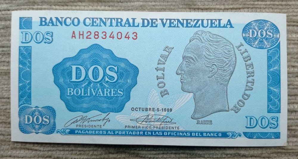 Werty71 Венесуэла 2 боливара 1989 аUNC банкнота