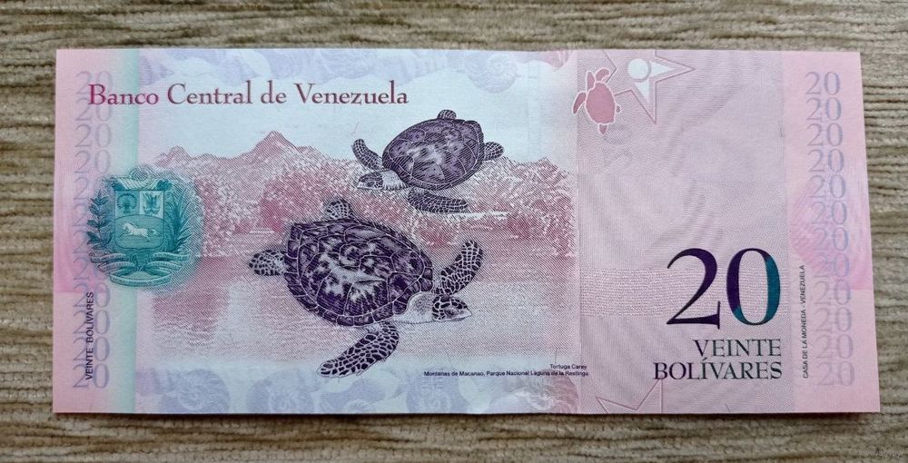 Werty71 Венесуэла 20 боливаров 2014 UNC банкнота Черепашки