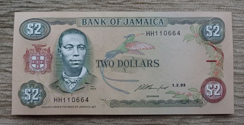 Werty71 Ямайка 2 доллара 1993 UNC банкнота