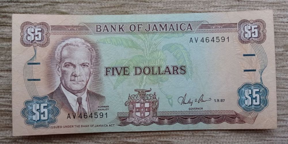 Werty71 Ямайка 5 доллара 1987 банкнота