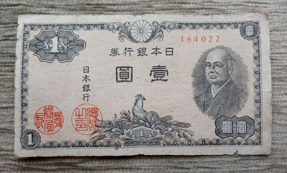 Werty71 Япония 1 йена иена 1946 Сонтоку Ниномия Банкнота Петух