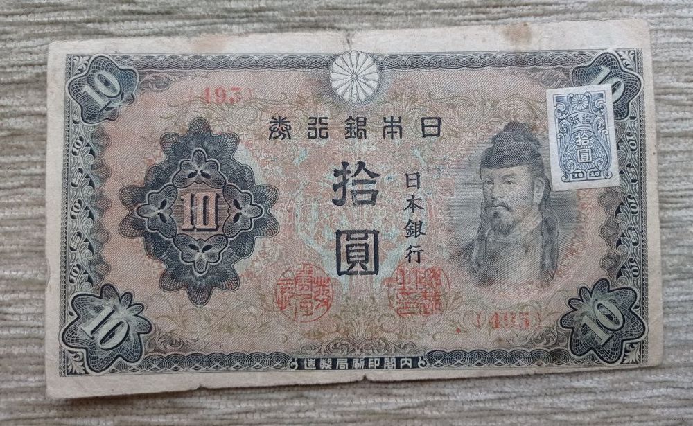 Werty71 ЯПОНИЯ 10 йен 1943 банкнота с маркой