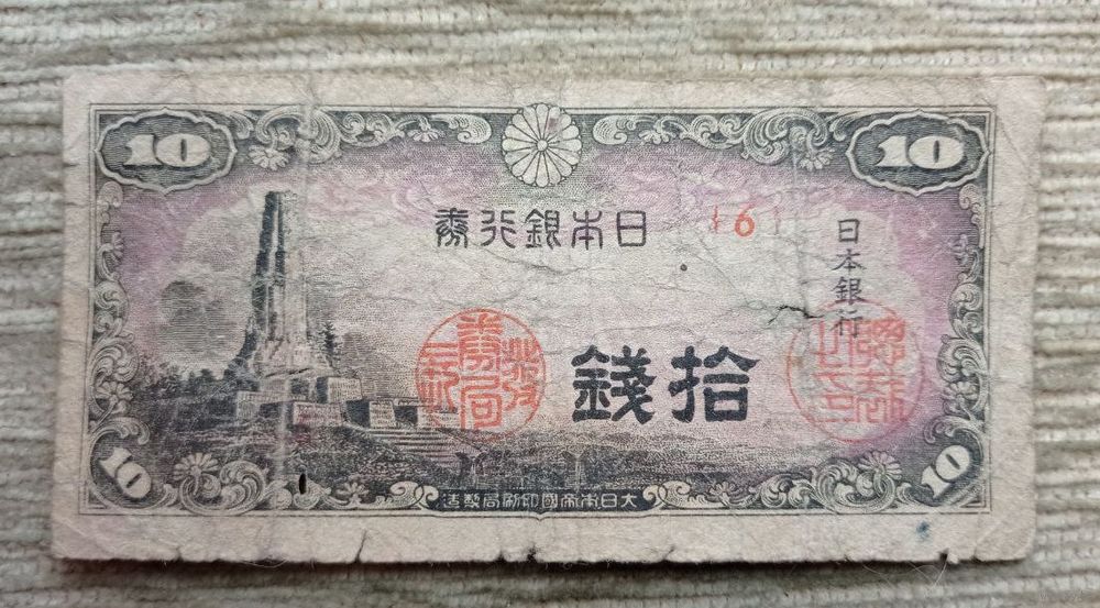 Werty71 Япония 10 сен 1944 Храмовый комплекс Банкнота