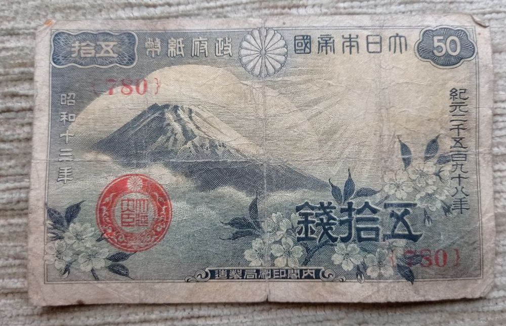 Werty71 Япония 50 сен 1938 Гора Фудзияма и цветки сакуры банкнота
